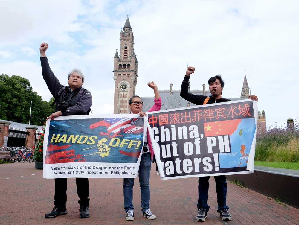 Bên ngoài tòa nhà nguy nga của Tòa Trọng tài Thường trực ở thành phố La Haye oai nghiêm tại Hà Lan, những nhóm nhỏ người bắt đầu tụ tập từ buổi sáng. Đầu tiên là một nhóm người Philippines vẫy biểu ngữ và hô vang “Trung Quốc hãy ra khỏi vùng biển của Philippines”, rồi tiếp đến là sự xuất hiện của một số nhà báo và nhóm truyền hình.