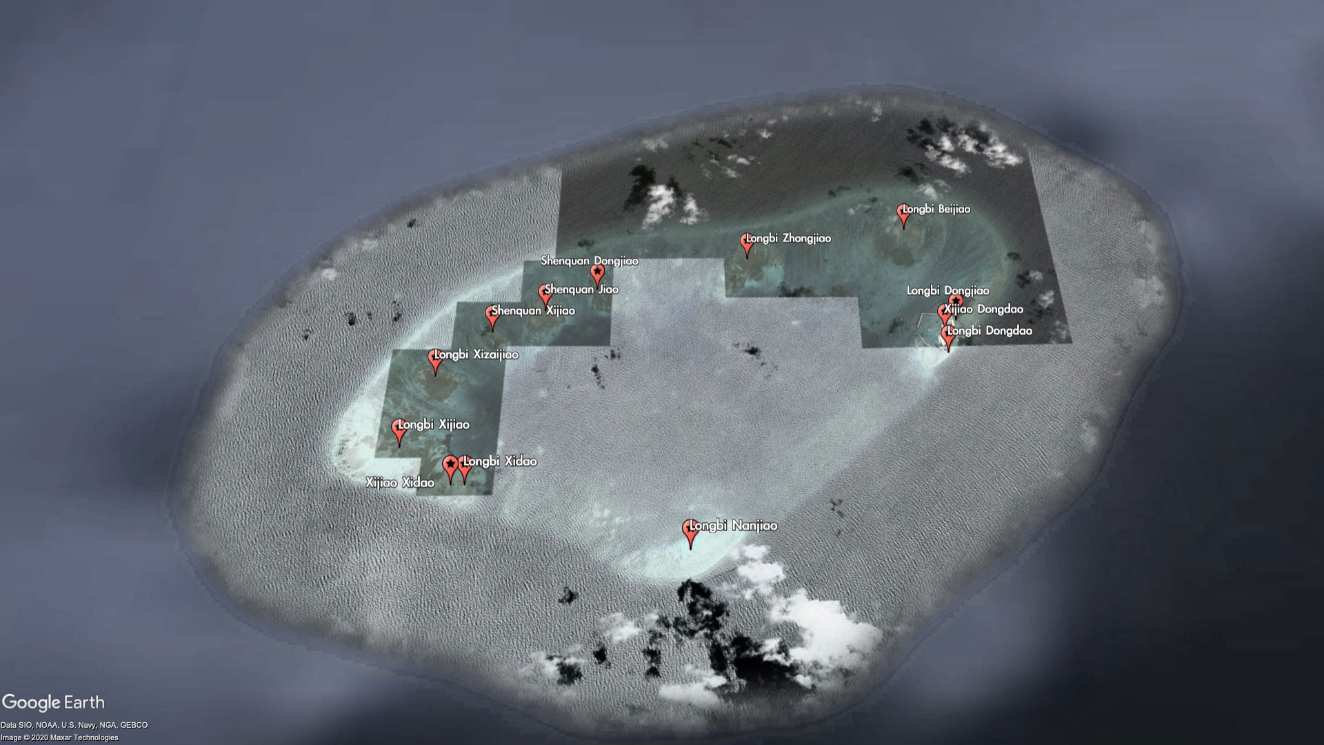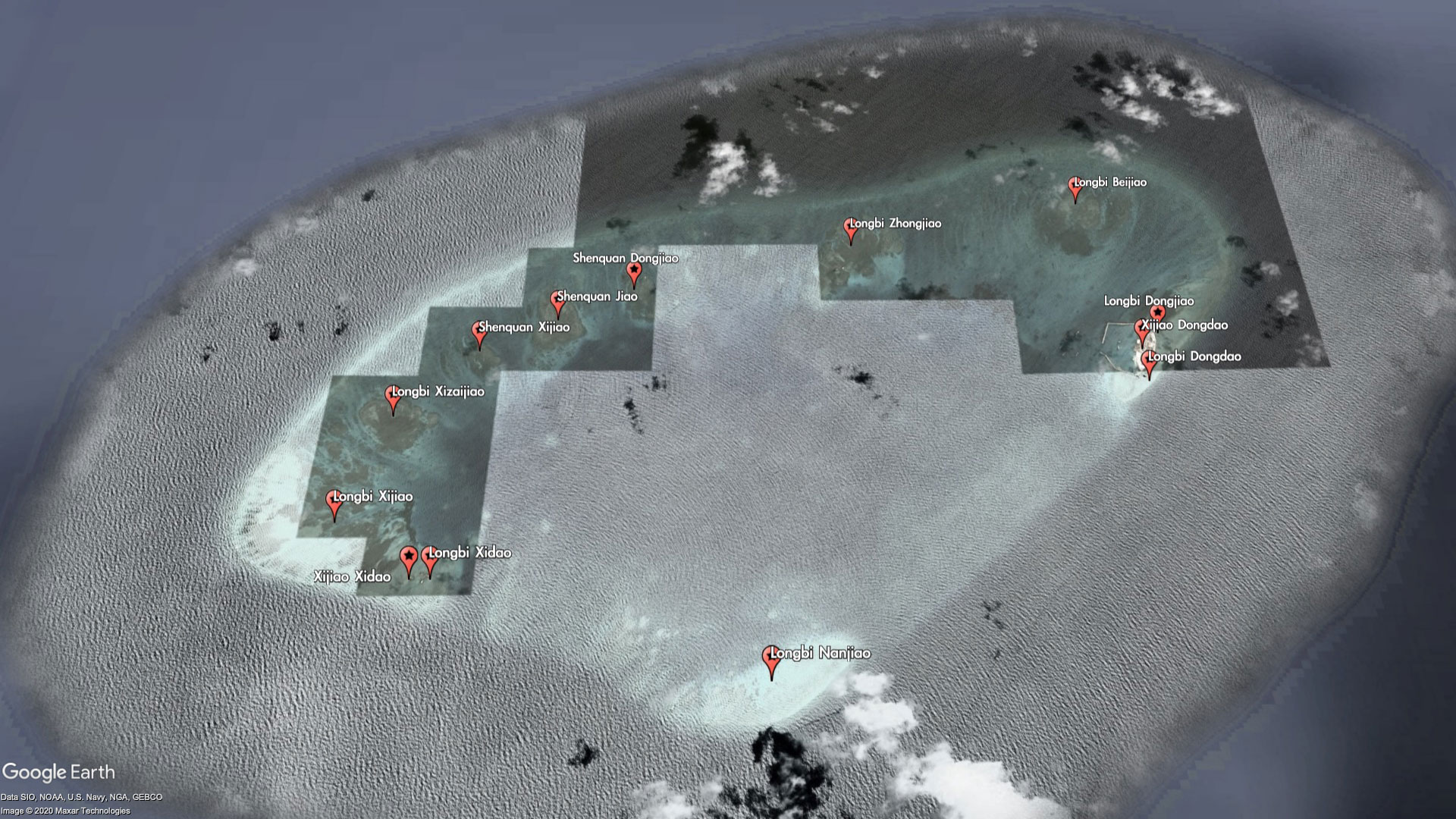 Sử dụng hình ảnh vệ tinh và phần mềm vẽ bản đồ, Đài Á Châu Tự Do nghiên cứu những tuyên bố chủ quyền được Trung Quốc công bố hồi tháng 4 năm 2020 và thấy rằng những thực thể này bao gồm các đá, bãi cát, và các bãi đá nhỏ nằm rải rác ngoài khơi của Việt Nam, xung quanh vùng quần đảo Hoàng Sa đang tranh chấp, và quần đảo Trường Sa nơi 6 quốc gia trong khu vực đang đòi chủ quyền. Phần lớn trong số 80 thực thể này hoàn toàn nằm dưới mực nước biển. Không có thực thể nào trong số này đủ tiêu chuẩn để gọi là đảo dù Trung Quốc một mực khẳng định là đảo.